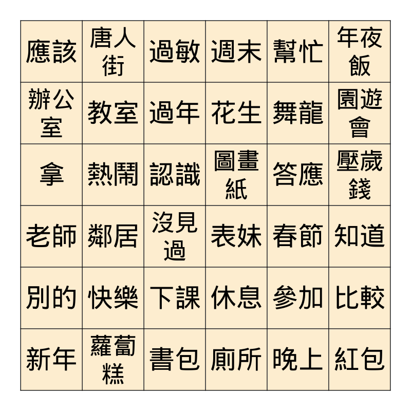 生字遊戲 | First Orientation | 生字遊戲 | First Orientation | 過年賓果