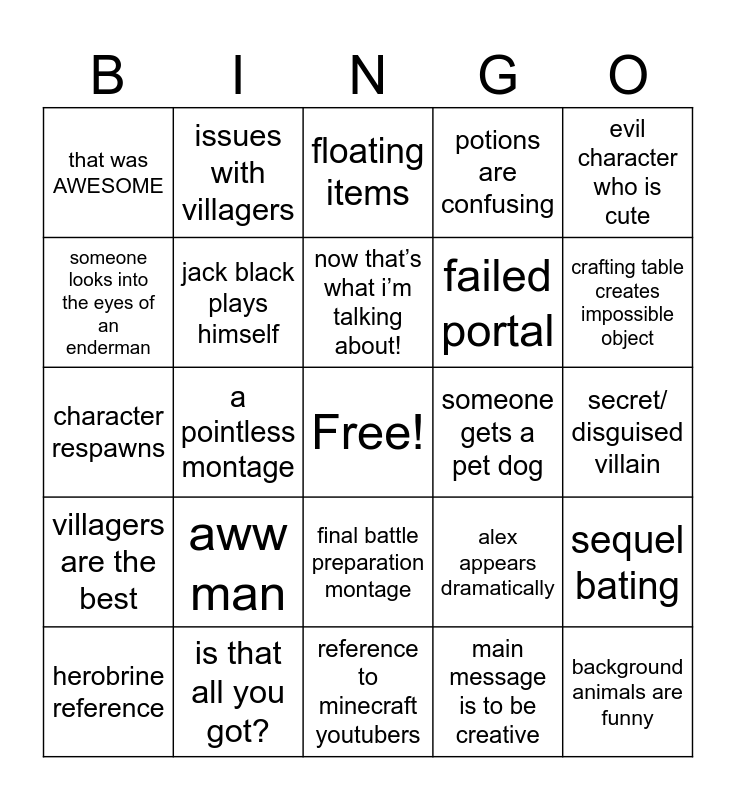 Minecraft Movie Bingo | minecraft movie | Schminecraft Schmovie Schbingo | Schminecraft Schmovie Schbingo | Minecraft Movie Bingo