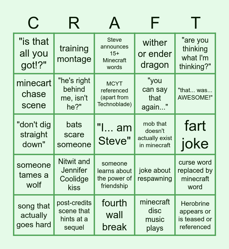 Minecraft film Bingo! | The A Minecraft Movie Bingo | The A Minecraft Movie Bingo | Minecraft Movie Bingo | Minecraft Movie Bingo