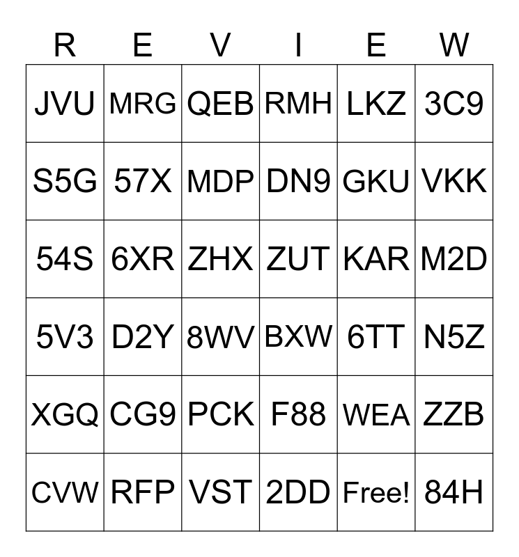 This bingo card has 41 words: 2DD, GKU, Y8T, S5G, BXW, M2D, 57X, VZK, LKZ, ZUT, VKK, RMH, 54S, ZHX, 6XR, KAR, CVW, JVU, Free!, QEB, D2Y, XGQ, 6TT, MDP, 84H, WEA, N5Z, 5RX, DN9, CG9, P56, MRG, 8WV, RFP, 5V3, 3C9, PCK, ZZB, VST, F88 and UBT.