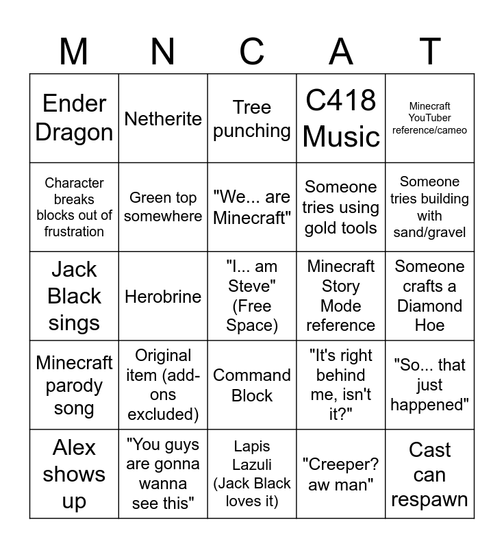 Minecraft Movie Bingo | Minecraft Movie Bingo | A Minecraft Movie Bingo Card | Minecraft Movie | Mine craft