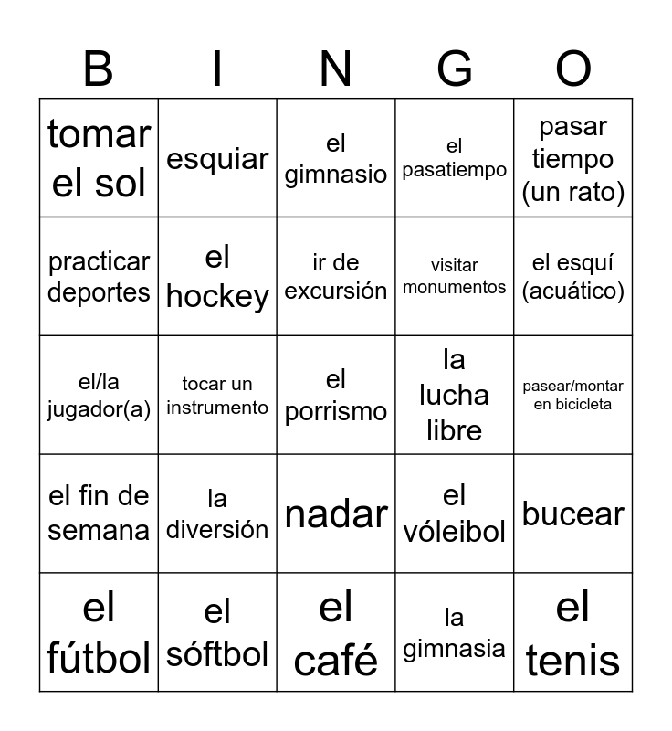 Pasatiempos - Lugares - Deportes | Chapter 4 Contextos | Los pasatiempos | Los pasatiempos | Lesson 4 vocab