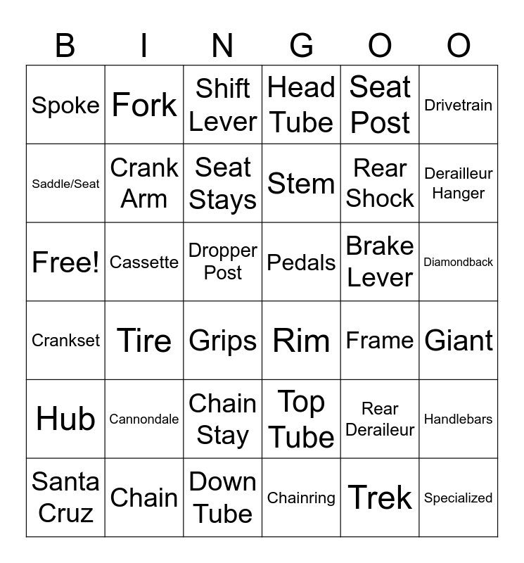 Bike Parts | BICYCLE BINGO! | Bike Part Bingo | Bicycle Parts | Bicycle Bingo