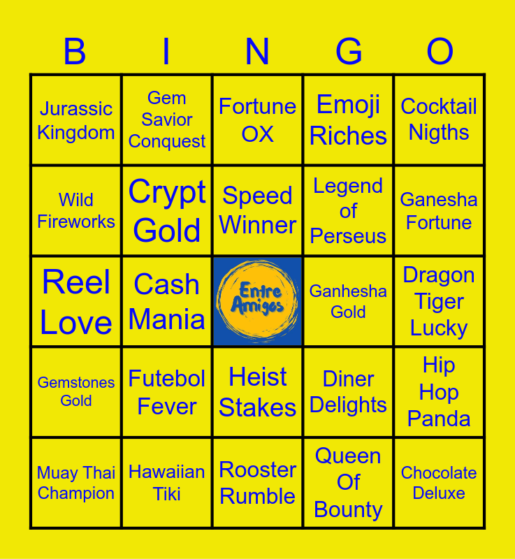 This bingo card has a free space and 75 words: Fortune Rabbit, Fortune Dragon, Fortune OX, Fortune Tiger, Fortune Mouse, Leprechaun Riches, Lucky Neko, Wild Bandito, Queen Of Bounty, Double Fortune, Dragon Hatch, Caishen Wins, Ganhesha Gold, Ganesha Fortune, Ways of The qilin, Crypt Gold, Prosperity Fortune Tree, Diner Delights, Thai River Wonders, Wild Fireworks, Bali Vacation, Speed Winner, Legend of Perseus, Cocktail Nigths, Jurassic Kingdom, Dreams of Macau, Mahjong Ways, Fortune Gods, Hotpot, Dragon Legend, Prosperity Lion, Tree of Fortune, Jungle delight, Hip Hop Panda, Reel Love, Gem Savior Conquest, Ninja VS Samurai, Shaolin Soccer, Dragon Tiger Lucky, Muay Thai Champion, Emperor's Favour, Piggy Gold, Opera Dynasty, Candy Bonanza, Magestic Treasures, Rise of Apollo, Heist Stakes, Emoji Riches, Mask Carnival, Garuda Gems, Oriental Prosperity, Rooster Rumble, Butterfly Blussom, Wild Coaster, Lucky Piggy, Totem Wonders, Alchemy Gold, Asgardian Rising, Midas Fortune, Bakery Bonanza, Hawaiian Tiki, Super Golf Drive, Songkran Splash, Fruity Candy, Cruise Royale, Cash Mania, Safari Wilds, Máfia Mayhem, Tsar Treasures, Gemstones Gold, Futebol Fever, Yakusa Konor, Museum Mystery, Chocolate Deluxe and Rio Fantasia.