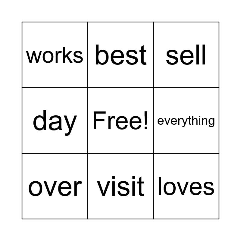 This bingo card has a free space and 30 words: unusual, famous, artist, nowadays, works, sell, over, each, understand, anybody, spend, money, something, okay, friendly, probably, wants, eat, sure, loves, peanuts, bag, best, city, everything, day, sitting, window, visit and place.