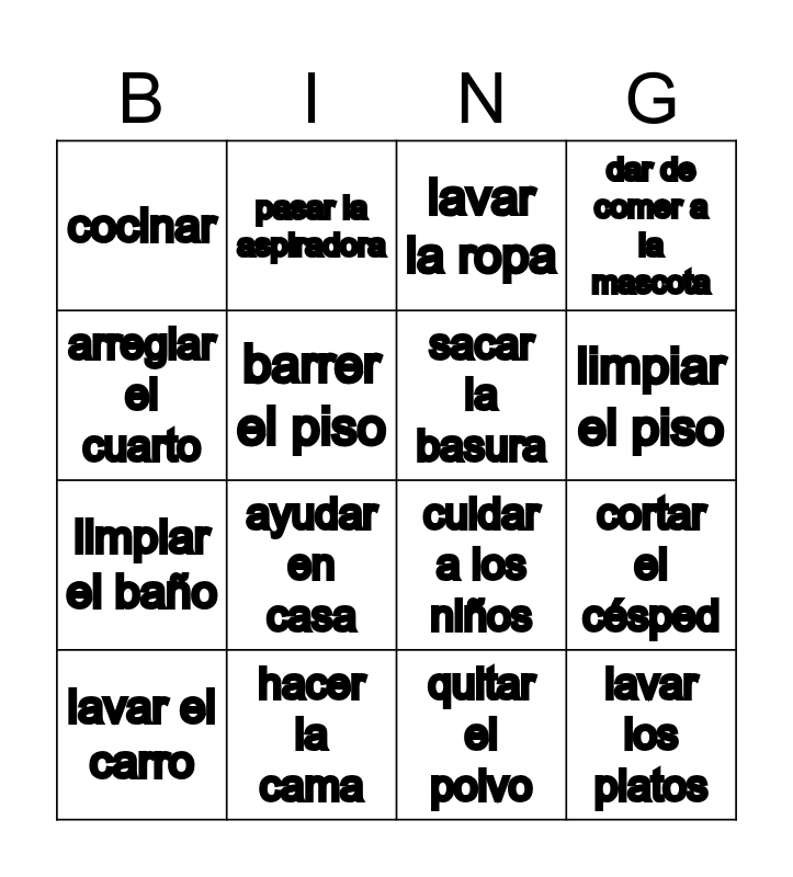 Los Quehaceres | ¡Lotería! Los quehaceres vocab | LOS QUEHACERES | Quehaceres | Los Quehaceres