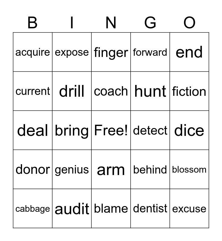 This bingo card has a free space and 916 words: abandon, ability, able, about, above, absent, absorb, abstract, absurd, abuse, access, accident, account, accuse, achieve, acid, acoustic, acquire, across, act, action, actor, actress, actual, adapt, add, addict, address, adjust, admit, adult, advance, advice, aerobic, affair, afford, afraid, again, age, agent, agree, ahead, aim, air, airport, aisle, alarm, album, alcohol, alert, alien, all, alley, allow, almost, alone, alpha, already, also, alter, always, amateur, amazing, among, amount, amused, analyst, anchor, ancient, anger, angle, angry, animal, ankle, announce, annual, another, answer, antenna, antique, anxiety, any, apart, apology, appear, apple, approve, april, arch, arctic, area, arena, argue, arm, armed, armor, army, around, arrange, arrest, arrive, arrow, art, artefact, artist, artwork, ask, aspect, assault, asset, assist, assume, asthma, athlete, atom, attack, attend, attitude, attract, auction, audit, august, aunt, author, auto, autumn, average, avocado, avoid, awake, aware, away, awesome, awful, awkward, axis, baby, bachelor, bacon, badge, bag, balance, balcony, ball, bamboo, banana, banner, bar, barely, bargain, barrel, base, basic, basket, battle, beach, bean, beauty, because, become, beef, before, begin, behave, behind, believe, below, belt, bench, benefit, best, betray, better, between, beyond, bicycle, bid, bike, bind, biology, bird, birth, bitter, black, blade, blame, blanket, blast, bleak, bless, blind, blood, blossom, blouse, blue, blur, blush, board, boat, body, boil, bomb, bone, bonus, book, boost, border, boring, borrow, boss, bottom, bounce, box, boy, bracket, brain, brand, brass, brave, bread, breeze, brick, bridge, brief, bright, bring, brisk, broccoli, broken, bronze, broom, brother, brown, brush, bubble, buddy, budget, buffalo, build, bulb, bulk, bullet, bundle, bunker, burden, burger, burst, bus, business, busy, butter, buyer, buzz, cabbage, cabin, cable, cactus, cage, cake, call, calm, camera, camp, can, canal, cancel, candy, cannon, canoe, canvas, canyon, capable, capital, captain, car, carbon, card, cargo, carpet, carry, cart, case, cash, casino, castle, casual, cat, catalog, catch, category, cattle, caught, cause, caution, cave, ceiling, celery, cement, census, century, cereal, certain, chair, chalk, champion, change, chaos, chapter, charge, chase, chat, cheap, check, cheese, chef, cherry, chest, chicken, chief, child, chimney, choice, choose, chronic, chuckle, chunk, churn, cigar, cinnamon, circle, citizen, city, civil, claim, clap, clarify, claw, clay, clean, clerk, clever, click, client, cliff, climb, clinic, clip, clock, clog, close, cloth, cloud, clown, club, clump, cluster, clutch, coach, coast, coconut, code, coffee, coil, coin, collect, color, column, combine, come, comfort, comic, common, company, concert, conduct, confirm, congress, connect, consider, control, convince, cook, cool, copper, copy, coral, core, corn, correct, cost, cotton, couch, country, couple, course, cousin, cover, coyote, crack, cradle, craft, cram, crane, crash, crater, crawl, crazy, cream, credit, creek, crew, cricket, crime, crisp, critic, crop, cross, crouch, crowd, crucial, cruel, cruise, crumble, crunch, crush, cry, crystal, cube, culture, cup, cupboard, curious, current, curtain, curve, cushion, custom, cute, cycle, dad, damage, damp, dance, danger, daring, dash, daughter, dawn, day, deal, debate, debris, decade, december, decide, decline, decorate, decrease, deer, defense, define, defy, degree, delay, deliver, demand, demise, denial, dentist, deny, depart, depend, deposit, depth, deputy, derive, describe, desert, design, desk, despair, destroy, detail, detect, develop, device, devote, diagram, dial, diamond, diary, dice, diesel, diet, differ, digital, dignity, dilemma, dinner, dinosaur, direct, dirt, disagree, discover, disease, dish, dismiss, disorder, display, distance, divert, divide, divorce, dizzy, doctor, document, dog, doll, dolphin, domain, donate, donkey, donor, door, dose, double, dove, draft, dragon, drama, drastic, draw, dream, dress, drift, drill, drink, drip, drive, drop, drum, dry, duck, dumb, dune, during, dust, dutch, duty, dwarf, dynamic, eager, eagle, early, earn, earth, easily, east, easy, echo, ecology, economy, edge, edit, educate, effort, egg, eight, either, elbow, elder, electric, elegant, element, elephant, elevator, elite, else, embark, embody, embrace, emerge, emotion, employ, empower, empty, enable, enact, end, endless, endorse, enemy, energy, enforce, engage, engine, enhance, enjoy, enlist, enough, enrich, enroll, ensure, enter, entire, entry, envelope, episode, equal, equip, era, erase, erode, erosion, error, erupt, escape, essay, essence, estate, eternal, ethics, evidence, evil, evoke, evolve, exact, example, excess, exchange, excite, exclude, excuse, execute, exercise, exhaust, exhibit, exile, exist, exit, exotic, expand, expect, expire, explain, expose, express, extend, extra, eye, eyebrow, fabric, face, faculty, fade, faint, faith, fall, false, fame, family, famous, fan, fancy, fantasy, farm, fashion, fat, fatal, father, fatigue, fault, favorite, feature, february, federal, fee, feed, feel, female, fence, festival, fetch, fever, few, fiber, fiction, field, figure, file, film, filter, final, find, fine, finger, finish, fire, firm, first, fiscal, fish, fit, fitness, fix, flag, flame, flash, flat, flavor, flee, flight, flip, float, flock, floor, flower, fluid, flush, fly, foam, focus, fog, foil, fold, follow, food, foot, force, forest, forget, fork, fortune, forum, forward, fossil, foster, found, fox, fragile, frame, frequent, fresh, friend, fringe, frog, front, frost, frown, frozen, fruit, fuel, fun, funny, furnace, fury, future, gadget, gain, galaxy, gallery, game, gap, garage, garbage, garden, garlic, garment, gas, gasp, gate, gather, gauge, gaze, general, genius, genre, gentle, genuine, gesture, ghost, giant, gift, giggle, ginger, giraffe, girl, give, glad, glance, glare, glass, glide,