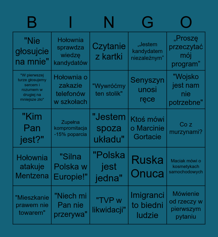 Bingo prezydenckie | Bingo debata prezydencka | Debata prezydencka | DEBATA PREZYDENCKA | Bingo debatanckie