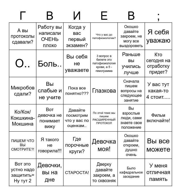 Бинго Гавришевой | Бинго Гавришевой | Бинго Гавришевой | Оценка преподов на просмотрах | Оценка преподов на просмотрах