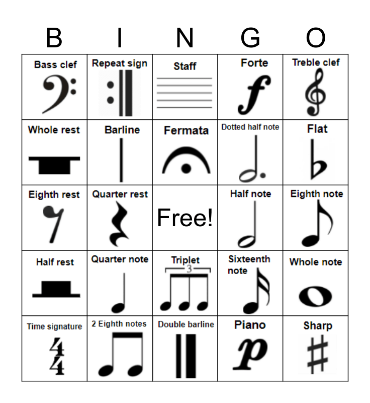 Music Bingo | Bass Clef/Note Values Bingo | Treble Clef Bingo | Musical notes singo | Musical Terms Bingo