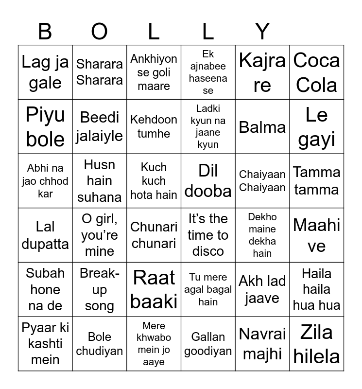 BOLLYWOOD SONG BINGO | BOLLYWOOD SONG BINGO | BOLLYWOOD SONG BINGO | BOLLYWOOD SONG BINGO | BOLLYWOOD SONG BINGO