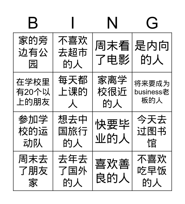 IB生涯BINGO | Find A Person | 找朋友 | 1B | 缤纷暑假