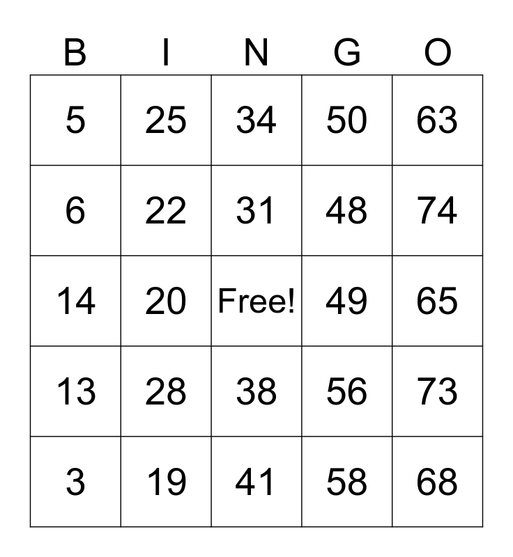 This bingo card has a free space and 74 words: 1, 16, 31, 46, 61, 2, 17, 32, 47, 62, 3, 18, 48, 63, 4, 19, 33, 49, 64, 5, 20, 34, 50, 65, 6, 21, 35, 51, 66, 7, 22, 36, 52, 67, 8, 23, 37, 53, 68, 9, 24, 38, 54, 69, 10, 25, 39, 55, 70, 11, 26, 40, 56, 71, 12, 27, 41, 57, 72, 13, 28, 42, 58, 73, 14, 29, 43, 59, 74, 15, 30, 44, 60 and 75.