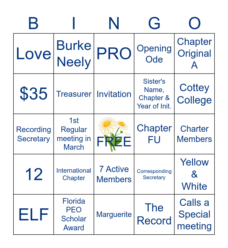 PEO | PEO Bingo | PEO Bingo | P.E.O. Bingo | Chapter Officer Bingo