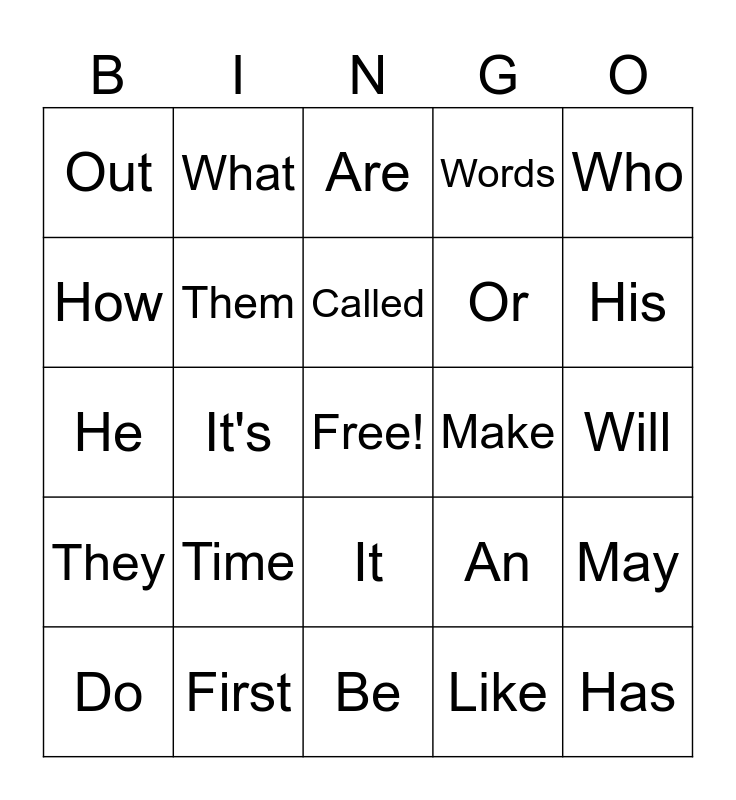This bingo card has a free space and 98 words: For, On, Up, Will, A, And, Two, More, One, Had, Come, Made, Into, Time, All, What, He, Was, Have, This, Way, No, Other, About, Many, Out, Be, At, There, Use, Do, How, Her, Some, His, With, Words, By, It's, Now, Been, Called, Or, From, That, It, To, In, Of, The, Than, My, Write, Go, Were, We, They, I, Day, Down, But, Not, Can, Said, Number, See, Get, Did, Your, When, Are, As, Like, Him, Could, People, Their, If, Look, Has, Then, Them, First, Water, Long, Find, Which, She, May, Part, Each, An, You, Is, Make, Would, Who and Am.