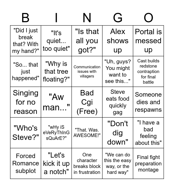 Minecraft Movie | Minecraft Movie Bingo | Minecraft Movie | Minecraft Movie Bingo | Minecraft Movie Bingo