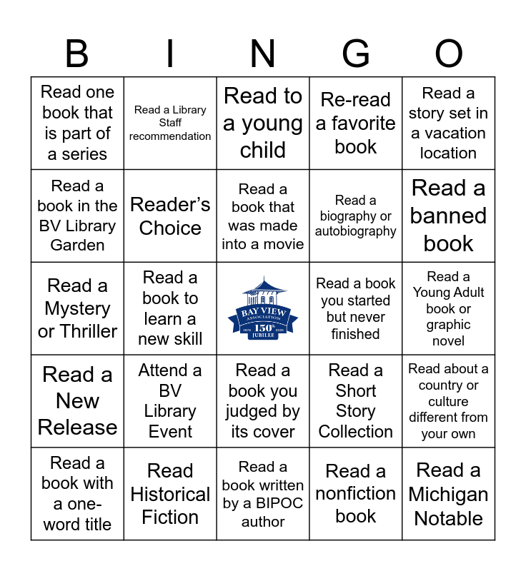 Bay View 150th Jubilee Summer Reading Bingo Teens & Adults | Bay View 150th Jubilee Summer Reading Bingo Teens & Adults | 2023 Bay View Summer Reading for Adult & Teens | Bay View Library Adult Summer Bingo 2022 | Bay View Library Adult Summer Reading 2022