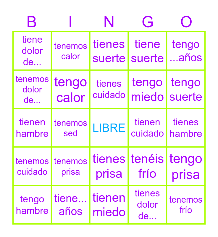 Tener | Expresiones con tener | expresiones con tener | Tener Expressions Bingo | Tener con expresiones