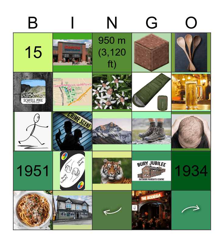 This bingo card has 30 images and 5 words: 1881, 15, 1951, 1934 and 950 m (3,120 ft).