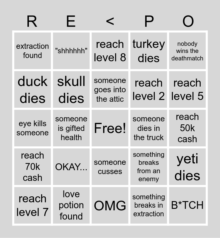 REPO HALLOWEEN BINGO | SQUEAKS REPO | R. E. P. O. | Repo Bingo | PG REPO BINGO
