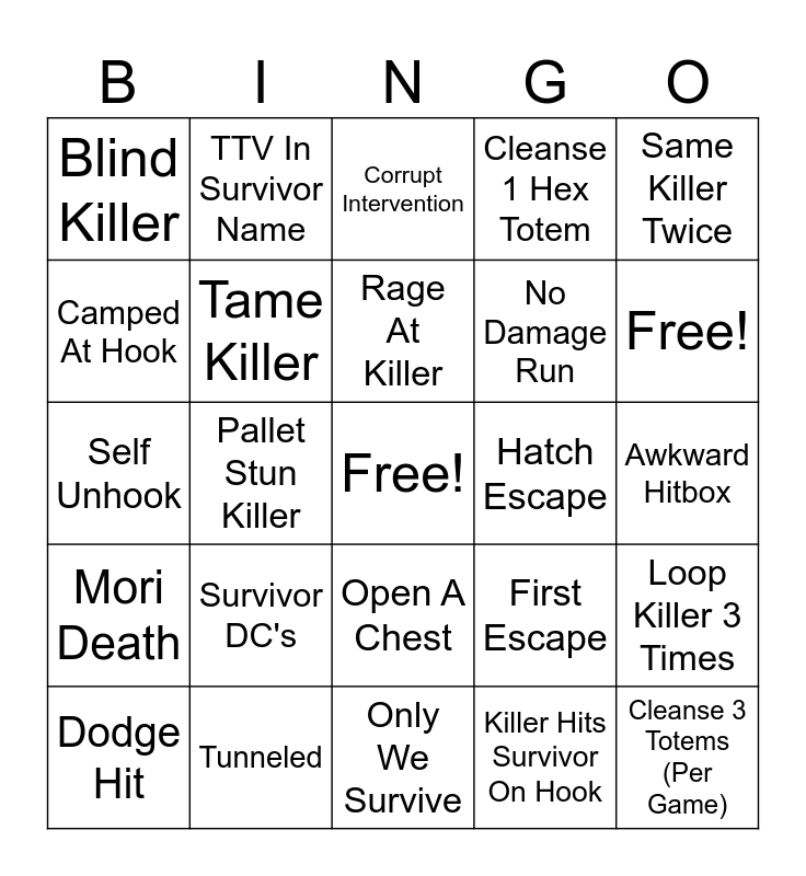 DBD Bingo | DBD Bingo | DBD Bingo | Aphy Cee's DBD Bingo! | DBD Bingo