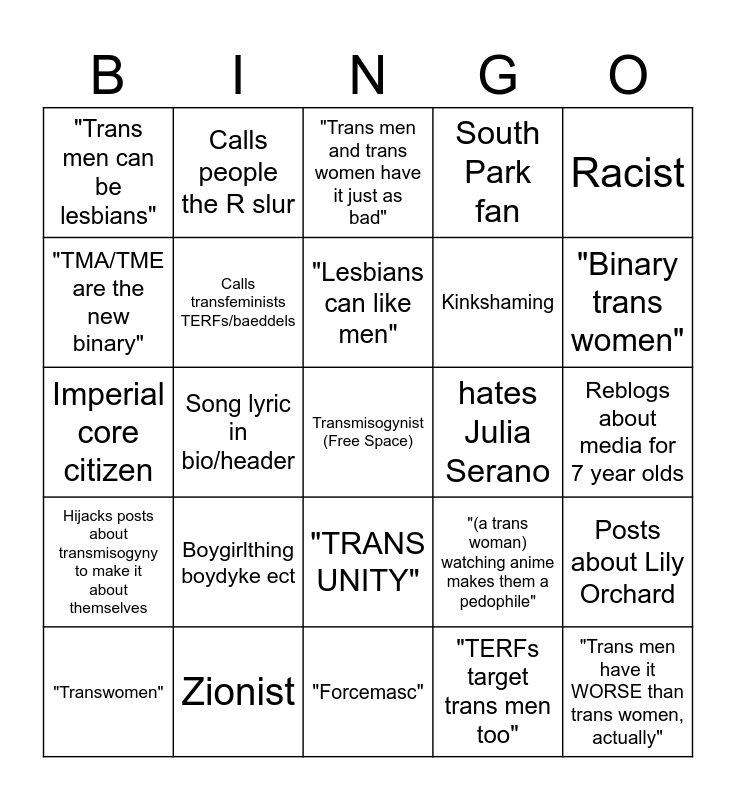 Transandrophobia Truther Bingo | Transandrophobia Truther Bingo | Transandrophobia Truther Bingo | TRA retardation Bingo | mspec lesbian bingo