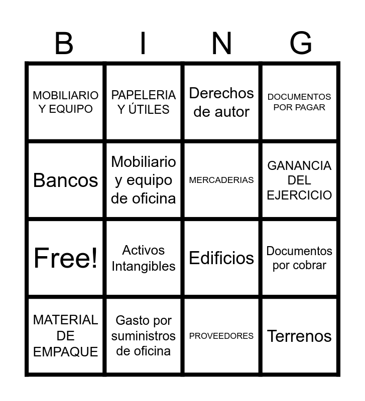 CUENTAS CONTABLES | BINGO CONTABILIDAD | CUENTAS | CUENTAS | CUENTAS