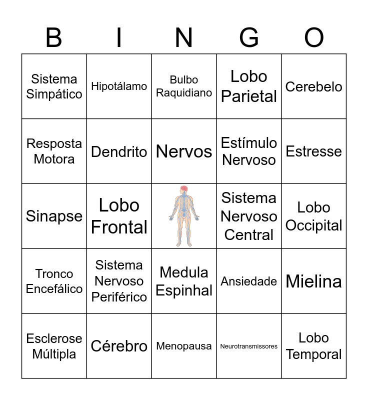 Ciências | Sistema Nervoso | Bingo Revisão Sistemas do Corpo Humano | Bingo Revisão Sistemas do Corpo Humano | Bingo Revisão Sistemas do Corpo Humano
