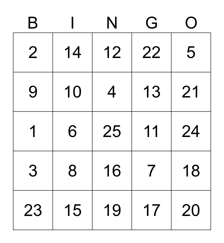 This bingo card has a free space and 24 words: 8, 15, 4, 23, 5, 2, 9, 14, 11, 16, 13, 1, 7, 18, 10, 17, 24, 12, 21, 6, 20, 3, 22 and 19.