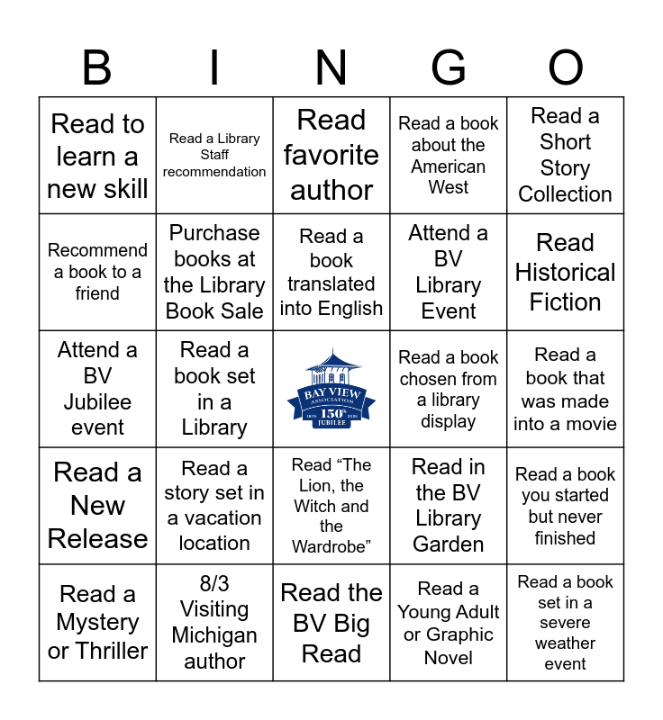Bay View 150th Jubilee Summer Reading Bingo Teens & Adults | Bay View Jubilee Summer Reading Bingo Teens & Adults | 2023 Bay View Summer Reading for Adult & Teens | Bay View Library Adult Summer Reading 2022 | Bay View Library Adult Summer Bingo 2022