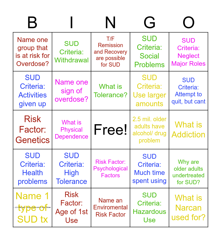 Substance Use Disorder | SUD Bingo | Dementia Prevention BINGO | Addiction Medicine Elective | Addiction Medicine Elective