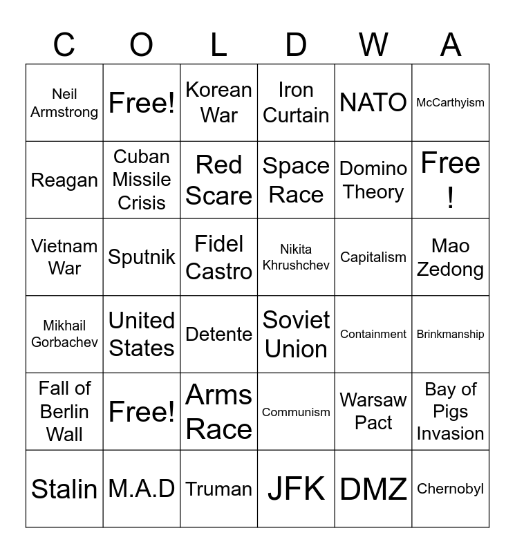 The Cold War | Unit 9 & 10 | Cold War Bingo | COLD WAR | Cold War Bingo