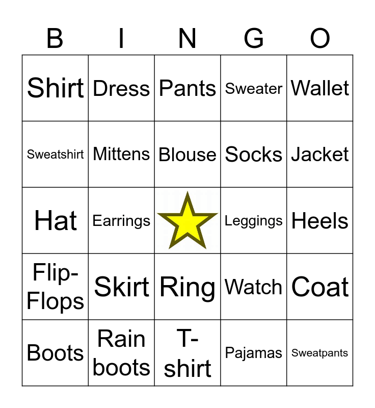 Clothes | Clothes | Clothes and Accessories | Clothing Items | BINGO