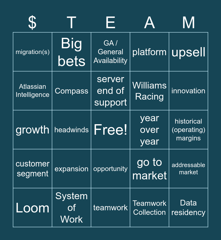 FY25Q4 Bingo | $TEAM FY26Q1 Bingo | Earnings Call Bingo FY25Q2 | FY25 Q1 Bingo | FY24 Q4 Bingo