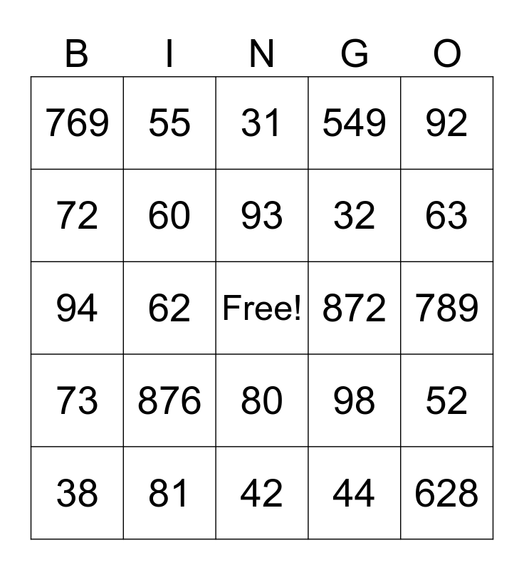 This bingo card has a free space and 41 words: 54, 94, 90, 60, 81, 80, 93, 80, 92, 73, 62, 549, 628, 789, 872, 876, 865, 769, 679, 31, 52, 11, 42, 32, 12, 14, 44, 24, 63, 21, 61, 55, 38, 78, 98, 72, 94, 97, 89, 68 and 75.