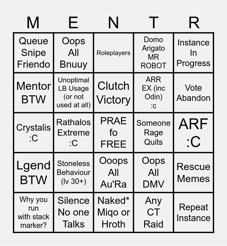 FFXIV Mentor Rouletti Bingo | FFXIV Mentor Rouletti Bingo | PF Bingo Card | Komi's Mentor Bingo | LATE NIGHT BINGO