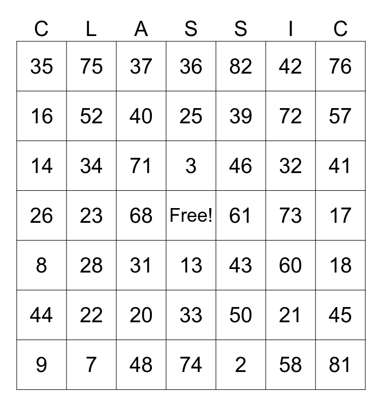 This bingo card has a free space and 90 words: 1, 2, 3, 4, 5, 6, 7, 8, 9, 10, 11, 12, 13, 14, 15, 16, 17, 18, 19, 20, 21, 22, 23, 24, 25, 26, 27, 28, 29, 30, 31, 32, 33, 34, 35, 36, 37, 38, 39, 40, 41, 42, 43, 44, 45, 46, 47, 48, 49, 50, 51, 52, 53, 54, 55, 56, 57, 58, 59, 60, 61, 62, 63, 64, 65, 66, 67, 68, 69, 70, 71, 72, 73, 74, 75, 76, 77, 78, 79, 80, 81, 82, 83, 84, 85, 86, 87, 88, 89 and 90.