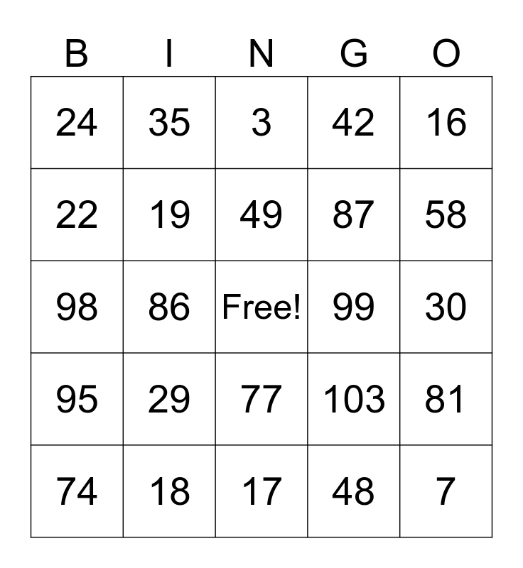 This bingo card has a free space and 74 words: 1, 2, 3, 39, 93, 38, 26, 12, 74, 59, 43, 67, 49, 22, 78, 86, 89, 58, 44, 98, 19, 35, 42, 50, 7, 4, 11, 15, 13, 41, 16, 3, 9, 40, 46, 48, 51, 10, 14, 36, 17, 18, 33, 20, 54, 24, 55, 29, 25, 57, 68, 70, 30, 60, 62, 65, 77, 76, 80, 81, 87, 90, 95, 96, 99, 100, 101, 102, 103, 104, 105, 106, 107 and 108.