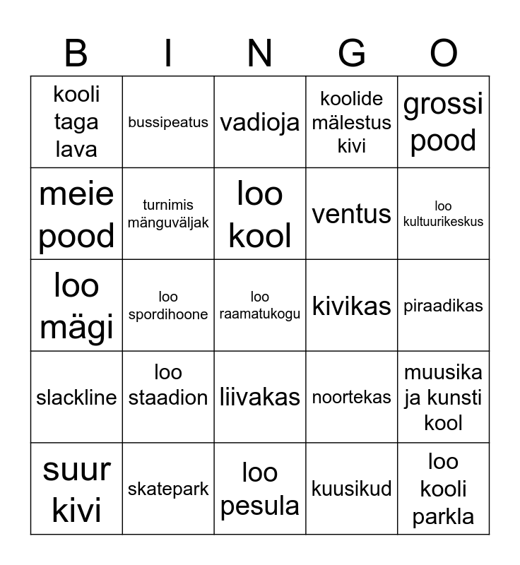 Loo Bingo | Loo 2025 | Loo bingo | KOHAD LINNAS | Õuebingo