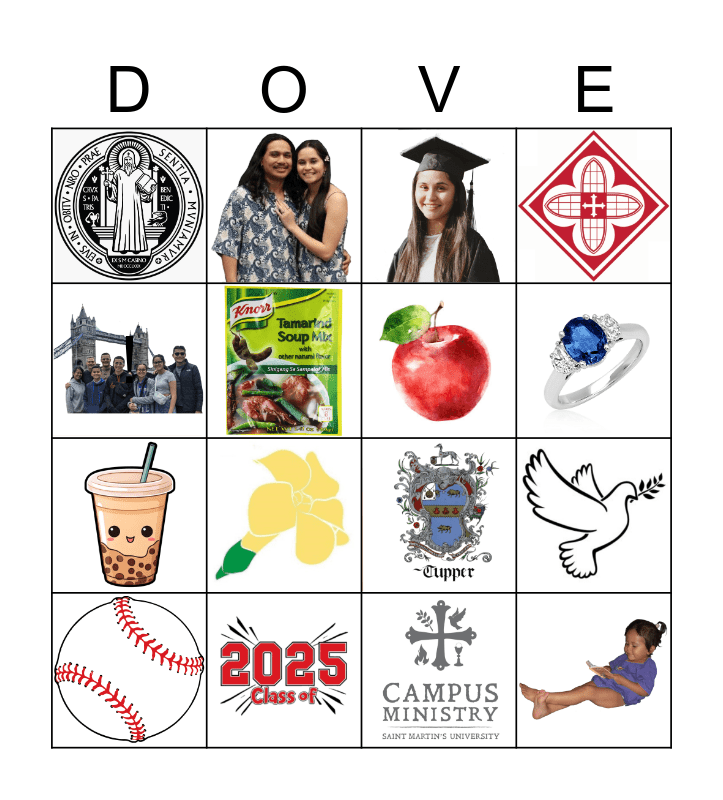 This bingo card has 16 images and 1 words: !.