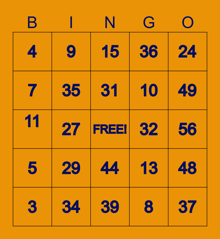 This bingo card has a free space and 39 words: 14, 6, 22, 13, 48, 5, 27, 25, 32, 56, 7, 9, 1, 49, 11, 29, 44, 36, 42, 3, 35, 31, 8, 24, 15, 34, 39, 17, 52, 4, 41, 16, 10, 37, 34, 55, 15, 51 and 26.