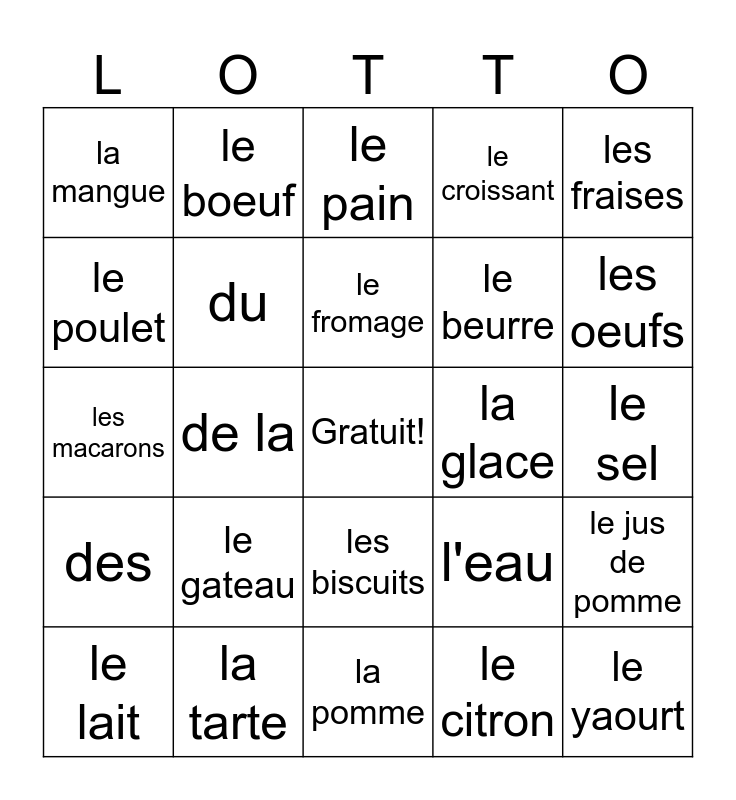la nourriture | la nourriture | French Bingo | Leçon 9A | French Food Bingo