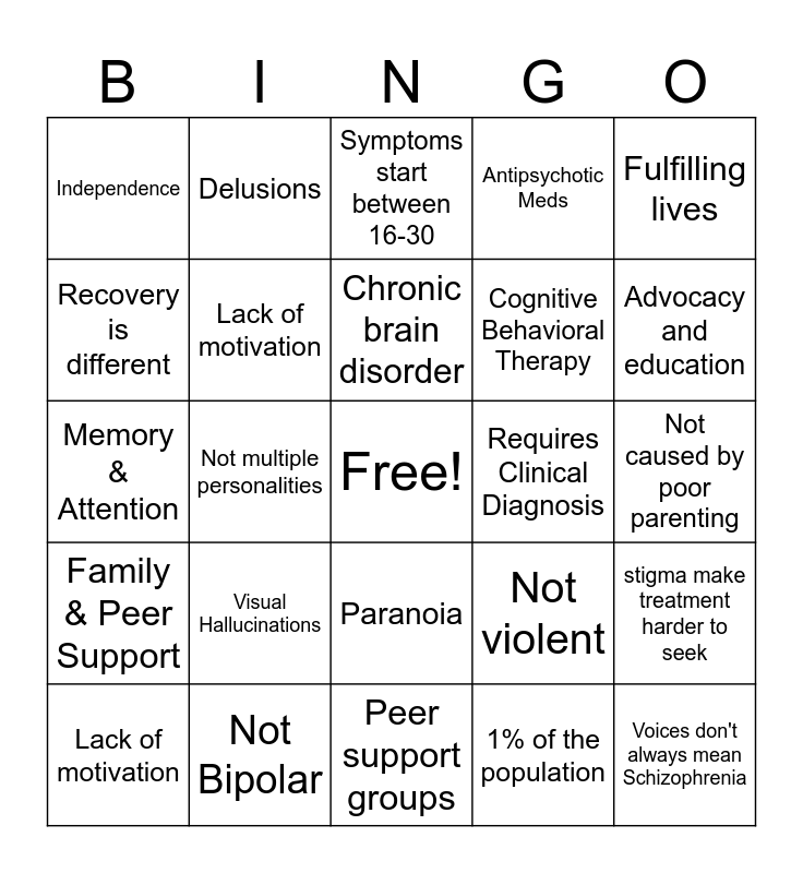 Schizophrenia Bingo | Mental Health Bingo | Schizophrenia | Schizophrenia | Schizophrenia