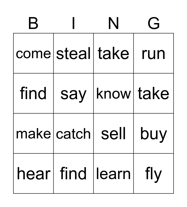 ⚠ This card has duplicate items: take (2), eat (2), find (2), make (2), run (2), say (2)