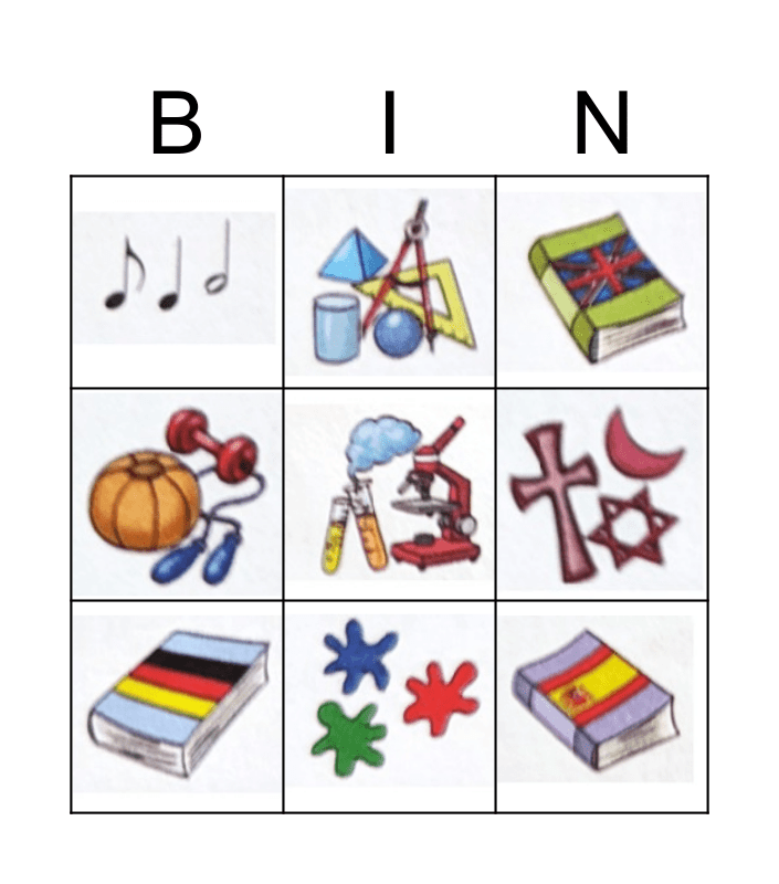 School subjects Bingo Card