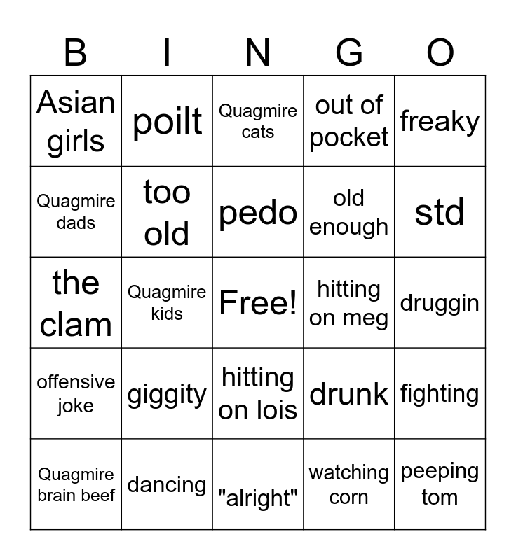 Quagmire Bingo | Quagmire bingo | boo | Quagmire bingo | Quagmire Bingo