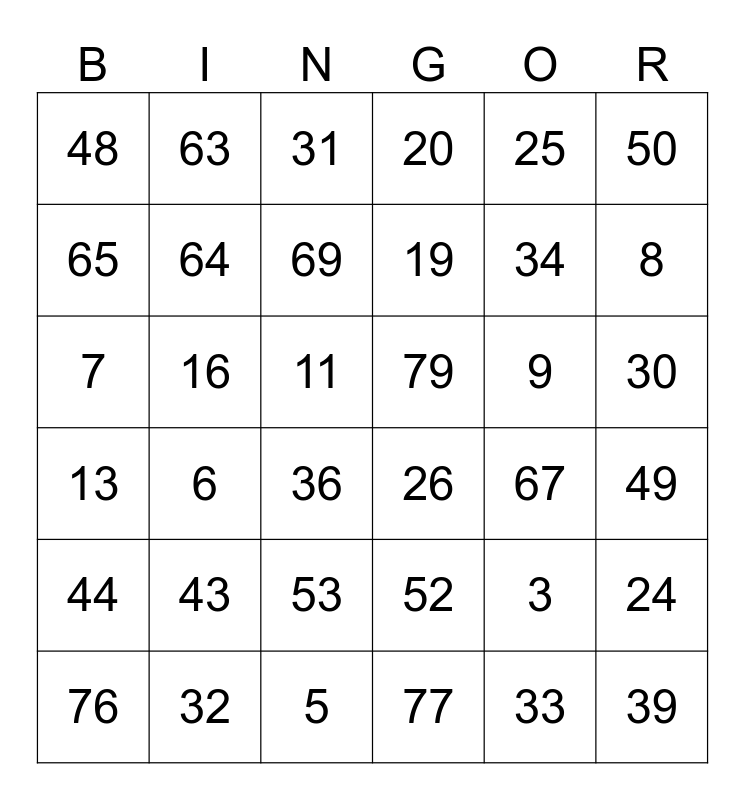 This bingo card has 81 words: 1, 16, 31, 46, 61, 2, 17, 32, 47, 62, 3, 18, 48, 63, 4, 19, 33, 49, Free!, 64, 5, 20, 34, 50, 65, 6, 21, 35, 51, 66, 7, 22, 36, 52, 67, 8, 23, 37, 53, 68, 9, 24, 38, 54, 69, 10, 25, 39, 55, 70, 11, 26, 40, 56, 71, 12, 27, 41, 57, 72, 13, 28, 42, 58, 73, 14, 29, 43, 59, 74, 15, 30, 44, 60, 75, 77, 45, 76, 78, 79 and 80.