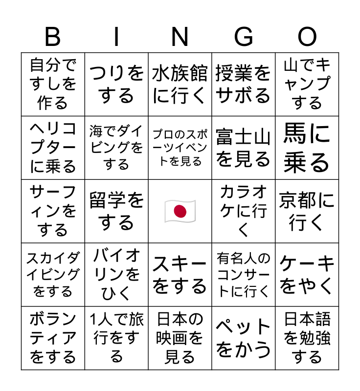 V(た)ことがあります | 〜たことがある | 経験ビンゴ | 経験(けいけん) | 行ったことがありますか?