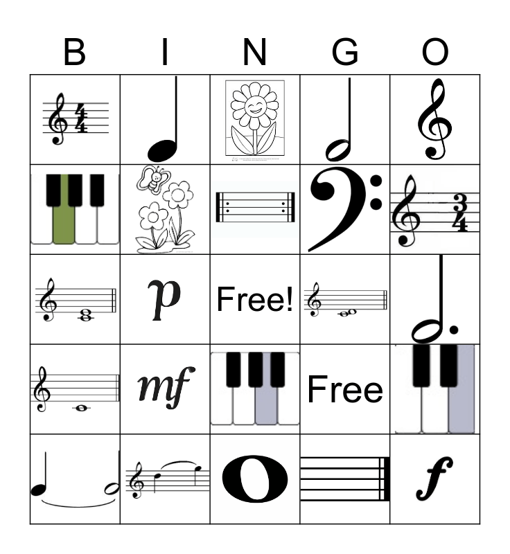 This bingo card has 24 images, a free space and 1 words: Free.