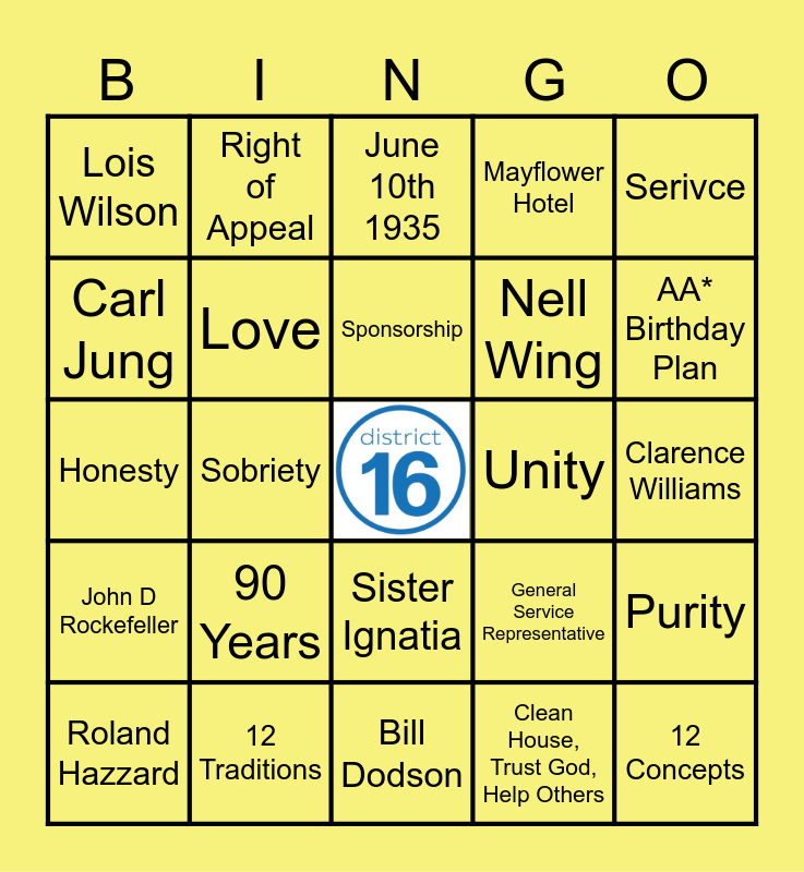 Alcoholics Anonymous Bingo | Alcoholics Anonymous Bingo | Alcoholics Anonymous Bingo | Alcoholics Anonymous Bingo | 90th AA Founders Day Celebration Bingo